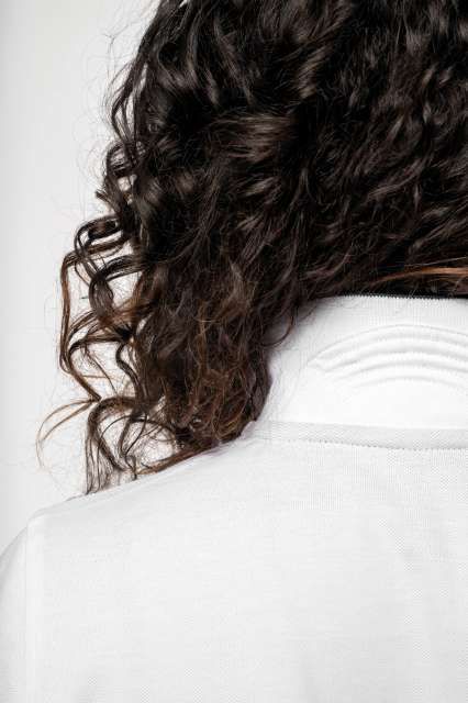 100% pamut piqué Bordázott gallér kontrasztos csíkkal és kontrasztos alsógallérral (a White színváltozat esetében nincs kontrasztos alsógallér) Kontrasztos pántos nyak és oldalsó sliccelés Dekoratív 5 gombos pánt Bordázott mandzsetták kontrasztos csíkkal Dupla tűzésű kivitel a szegélyen Kétoldalas gallér – felhajtva vagy lehajtva is viselhető STANDARD 100 by OEKO-TEX® N° CQ 1007/7, IFTH tanúsítvánnyal