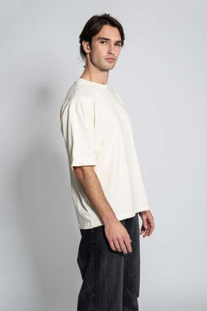100% gyűrűs fonású, fésült pamut Ejtett váll Rövidebb ujjak Oldalvarrott Boxy Fit Címke nélkül